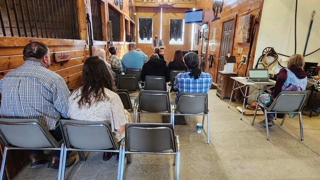 Mike serves as the church’s pastor, and services are held in his barn at his home at 501 Ranch Road in Blaine. Mike explained that the goal is to reach the unchurched and church-hurt people in the community. The church is nondenominational, and is affiliated with the AFCC (American Fellowship of Cowboy Churches), a Texasbased organization.