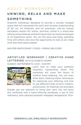 GREENHILLNC.ORG/ADULT-WORKSHOPS