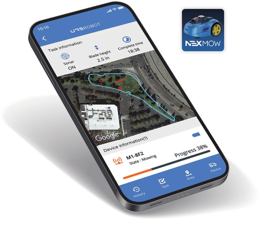 Nexmow Robot Mowers from URSRobot use 4G cellular and an industrial-grade RTK Network to create digital boundary maps and navigate mowers with a 2-centimeter accuracy. Installation of the geofence boundary is done once, and maps are saved to the cloud; then operators can deploy from 1-10 Nexmow robots to operate in a fleet. Any combination of robots can be deployed as needed, and they mow stripes and diamond cut patterns. The swappable lithium-ion battery has a six-hour run time and takes three hours to fully charge. There are no boundary wires or charging stations to install. Nexmow mowers allow landscapers to redeploy or supplement the lawn mowing labor from site to site. They are quiet and emission free. Nexmows can be purchased or rented (one-year subscription) from authorized Nexmow dealers in the US. Everything is controlled from the Nexmow app (iPhone and Android available) Drop, Mow and Go with a Nexmow. Additional features include: