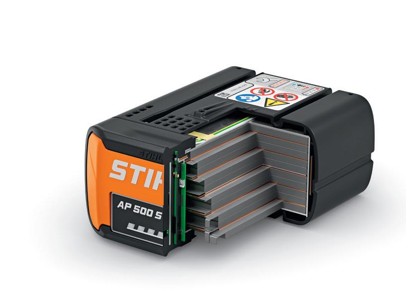 The Stihl AP 500 S battery features proprietary power-laminate cell technology. With the Stihl AP 500 S, Stihl introduced a new type of battery. Thanks to its innovative power-laminate cell technology, this battery impresses not only with its high-energy density and comparatively low weight, but also with its expected longevity. When properly cared for, the AP 500 S can accept up to twice as many charging cycles as compared to other Stihl conventional li-ion batteries, providing a significant increase in service life. The AP 500 S powers the Stihl AP System and is designed for professional users who are looking for reliable battery power. It provides an outstanding power-to-weight ratio, packing 337 watt-hours of energy at 4.2 pounds. The AP 500 S has Stihl connected built in. Stihl Connected is an excellent fleet management tool. It offers commercial users a detailed overview of all relevant data, such as the current charge status, daily operating time and age of battery. The information can be accessed and analyzed via smartphone or tablet.