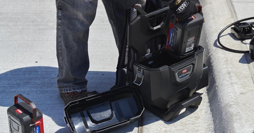 Toro’s new 60V Max Revolution Series Handheld Tools give users max convenience, max power and max run time along the way. The Revolution Series Handheld Tools were the first designed to work with a backpack power source. The game-changing addition ensures landscapers always have power on hand. It can hold two 10-Ah batteries at a time to keep Revolution trimmers and leaf blowers working all day long. Powered by Toro’s Flex-Force Power System, the Revolution Series delivers the same go-all-day power expected from gas. The 60-volt power comes to users fast, taking just 50 minutes to fully charge Toro’s largest battery in the all-new six-pod rapid charger. That outpaces the charging speed of larger, lower-voltage batteries.