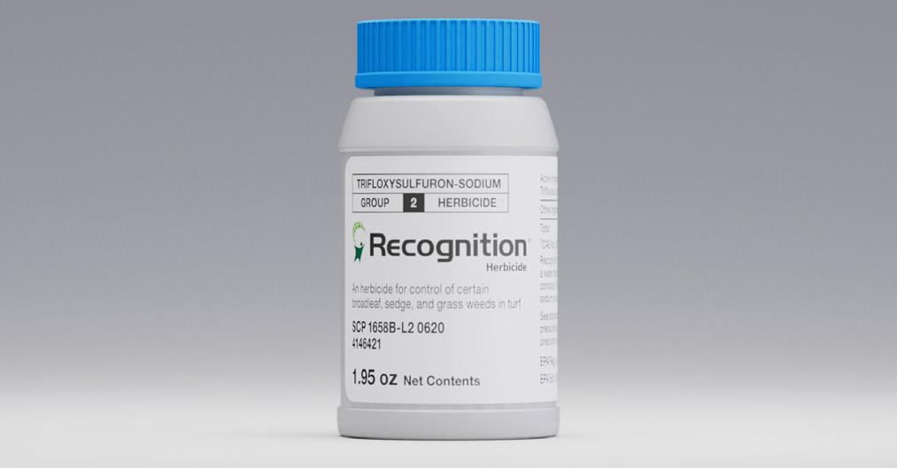 Syngenta’s Recognition herbicide is a weed control solution for use in warm-season grasses, including St. Augustinegrass and zoysiagrass lawns. With Recognition, lawn care operators can achieve outstanding control of broadleaf weeds, sedges and kyllingas with unparalleled turf safety. Recognition contains the active ingredient trifloxysulfuron, a sulfonylurea herbicide that controls sedge and kyllinga species in addition to many broadleaf and grass weeds. It features a proprietary safener, metcamifen, which helps safen certain herbicides in tank mixtures for faster, stronger and broader-spectrum control. Recognition is particularly well-suited for St. Augustinegrass lawns, where few weed control options are available. Other products labeled for St. Augustinegrass often cause unacceptable levels of turf injury, especially during the summer.