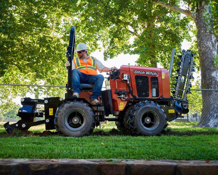 Ditch Witch’s PT37 ride-on plow/trencher is a dedicated plow with an optional trencher, reel-carrier and hydra-bore configuration to meet a range of jobsite needs. An adjustable side-facing seat allows the operator to see all four tires and the plow box while operating. The PT37 is largely mechanical and features a simplified control display. The compact footprint can scale down to 36 inches wide so users can enter standard gates and access tight work spaces. A foldable ROPS design allows users to keep the PT37 on a trailer for easy parking and storage in garages. Its tires provide cost savings compared to a tracked version and minimize the impact on yards. An optional dual-wheel configuration adds traction and stability. A Yanmar diesel engine provides 37 hp at 3,000 RPM for constant performance. An optimized plow design provides down pressure to maintain consistent plowing up to 24 inches deep in various conditions. With its streamlined and compact yet powerful design, it is designed for landscape, irrigation and telecom projects. The adjustable side-facing seat allows for clear visibility of all four tires and the plow box, ensuring precision and accuracy during operation.