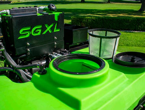 Steel Green Manufacturing's largest sprayer yet, the SGXL, is a multifunction applicator with large capacity and versatility. A 120-gallon spray capacity makes it useful for lawn care professionals who service commercial or large residential lawns. The Steel Green team developed the SGXL to meet the need for a larger, more versatile machine for turfgrass professionals. Its 12-mph transport speed and 27-gpm centrifugal pump save time at a time to boost efficiency.
