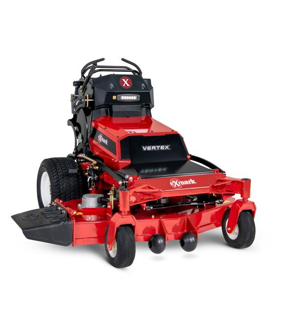 Exmark’s V-Series Electric Stand-On Mower provides commercial durability and cut quality in a HyperCell powered electric mower. It’s designed for anyone needing to comply with local regulations, ordinances or customer preferences. Designed specifically for commercial mower applications, HyperCell batteries are designed to run cooler to provide more run time and longer service life. The Vertex V-Series uses eight HyperCell batteries, with patent-pending management software that delivers up to seven hours of run time per charge. Commercial high-torque wheel motors work with a planetary transmission to deliver a smooth, responsive feel at the controls and ground speed of up to 10 mph. The 52-inch Electric Series four side-discharge cutting deck is fabricated and welded from high-strength steel. High-torque electric deck motors feature 9-inch-diameter cast aluminum spindle housings with blade retainers for maximum commercial durability. The electric powertrain eliminates maintenance associated with gasoline engines, including oil and filter changes. Electric spindle motors also eliminate belt maintenance and replacement. Horizon360 Connect smart equipment remote software provides real time app-based equipment data, battery charge status and location information.
