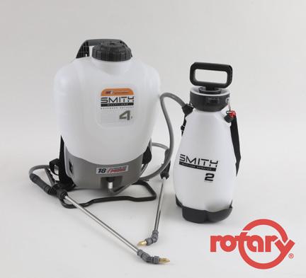 • Weed prevention, fertilizing, pest control, waterbased sealing and mildew removal is doable with Smith’s battery-operated sprayers from Rotary.
