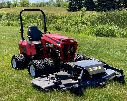 The new Steiner AirFX Mower Deck cut at varied heights from 1 to 5 inches and is available in 61- or 72-inch width sizes. With a deep-deck, bullnose design and patented Air-Gap baffle system, the AirFX mower deck creates a vacuum that lifts the grass. Striping rollers provide a more finished look. The attachment’s Air-Gap design increases airflow and aggressively shoots clippings out of the extra-large discharge opening. The deck’s hydraulic lift allows operators to easily raise and lower the deck for height of cut adjustments, transport or cleaning and maintenance, and features an 80 degree flip up for optimal accessibility.