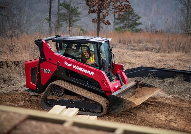Yanmar’s TL100VS features a torsion axle suspended undercarriage with a pivot link system at the rear axle. It comes equipped with a 103.5-hp Tier 4 Final Yanmar diesel engine and standard 40 gpm high flow to optimize performance capacity and efficiency on the jobsite. It includes a 3,780pound standard operating capacity and 10,800-pound tipping load. Travel speeds up to 8 mph boost mobility, while 4.4 psi ground pressure allows smooth performance on sensitive, unstable surfaces. It features 360-degree visibility, a 7-inch color display, a standard suspended seat and a removable roof hatch escape. The TL100VS includes a load sensing system, work tool positioner, return-toposition technology, self-leveling, ride control and auto two-speed capabilities. The loader incorporates Yanmar’s optional SmartAssist telematics. Additionally, the compact track loader will include a new remote-control option.