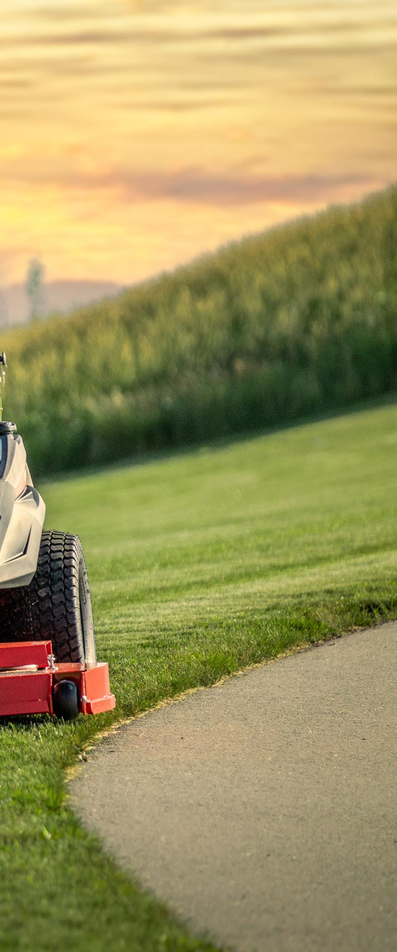 For residential areas, landscapers may want a mower with a smaller cutting deck to maneuver around obstacles easily, and if noise is a concern, contractors should consider batterypowered units to help their crews meet noise ordinances and extend the mowing timeframe, Nuessen says.