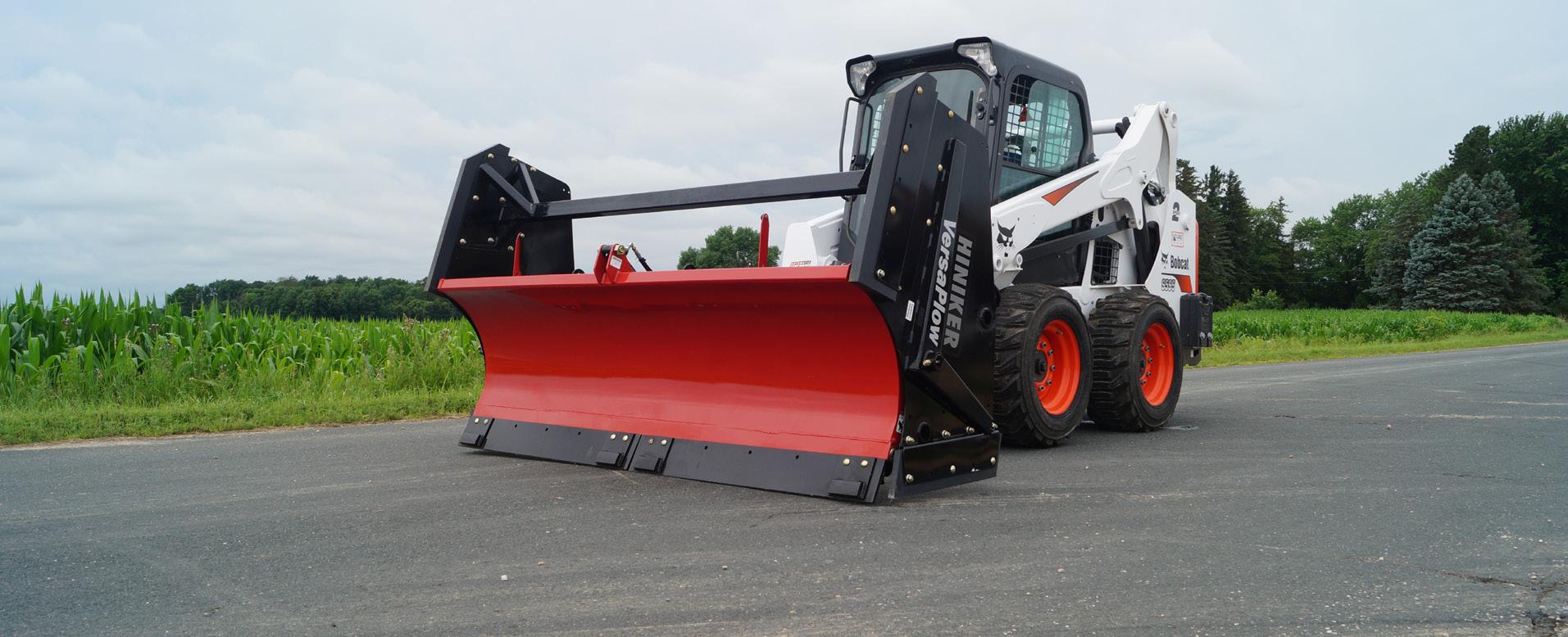 The VersaPlow features full hydraulic angling capabilities for conventional windrow plowing. This allows you to have all three functions in the palm of your hand. Hydraulically roll the end panels into any position from the cab. You can change the configuration of the Hiniker VersaPlow in seconds without the need to mount or re-mount equipment. Clear more snow in less time in retail parking lots, apartment complexes, municipal campuses, and industrial areas. Adaptable to any piece of equipment with a standard skid-steer mounting plate, the Hiniker VersaPlow brings a new level of efficiency and convenience to your snow removal operations. If you want to have it all in one system, the VersaPlow is always the way to go.