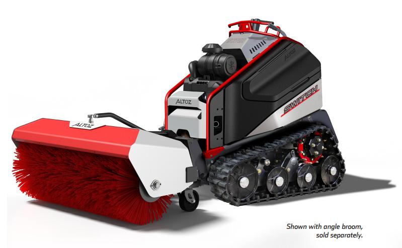 The all-new Altoz Switch stand-on tracked compact tool carrier pro vides the benefits of tracks along with the versatility of multiple attachments for mul tiseason use. Available attachment options include: three mower decks (all-terrain, brush and finish), angle broom, v-blade, straight blade, snow blower and brine de-icing system. The product includes: