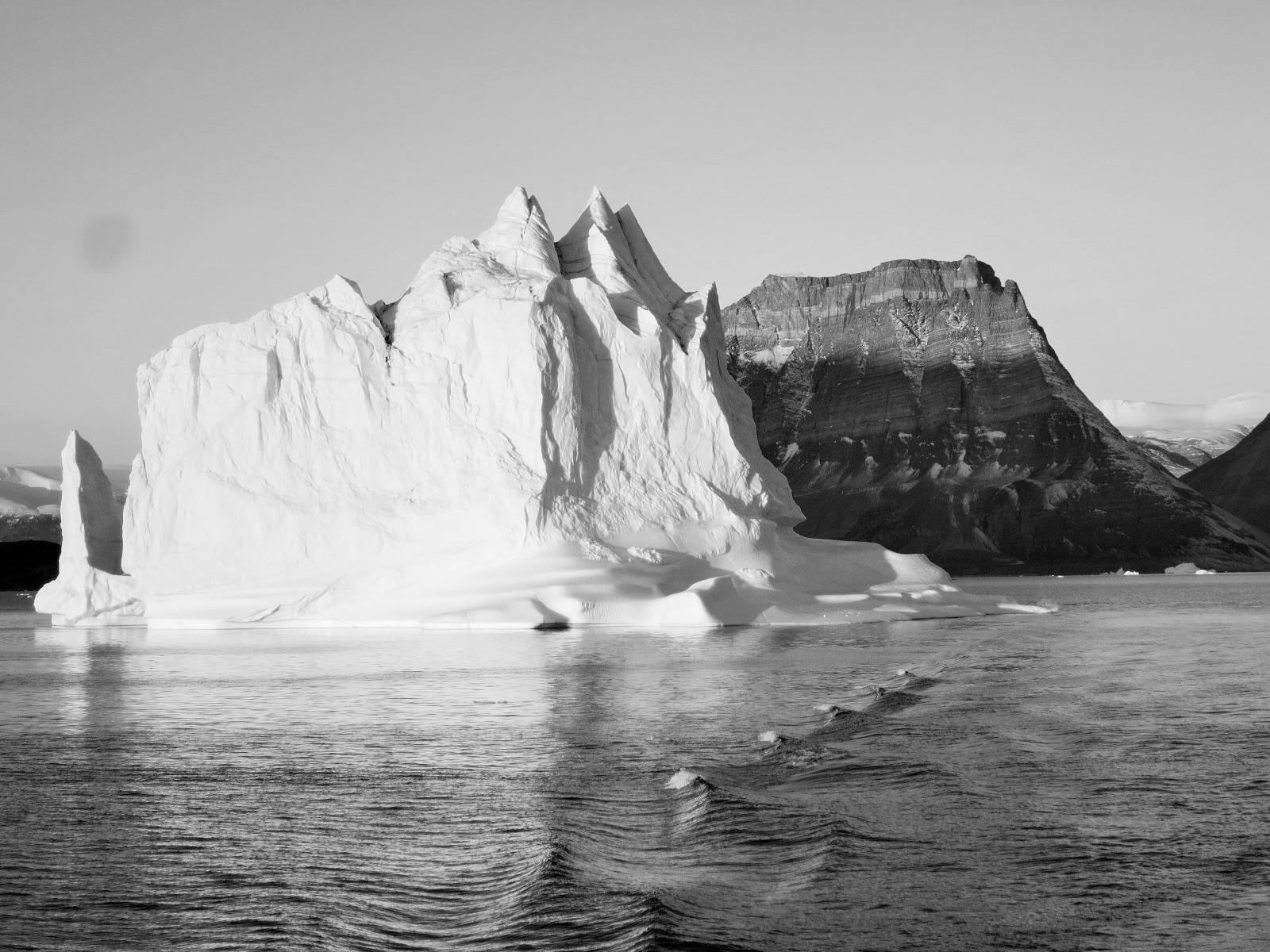 Foto 2. Et vue ud over Danmarksstrædet i øst. Om sommeren sker det, at drivis flyder ind i fjordene i Sydøstgrønland (begge fotos: K.L. Laidre).