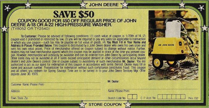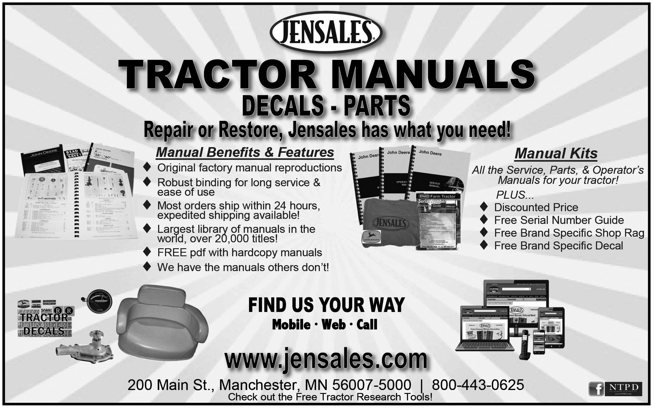 One last thing, since it will be May by the time most of you read this, remember that from now until Labor Day, we will be observing our summer hours. That just means that we are closed on Fridays. The phone rings a little less during the summer and it gives us more freedom to take off and head for tractor shows.