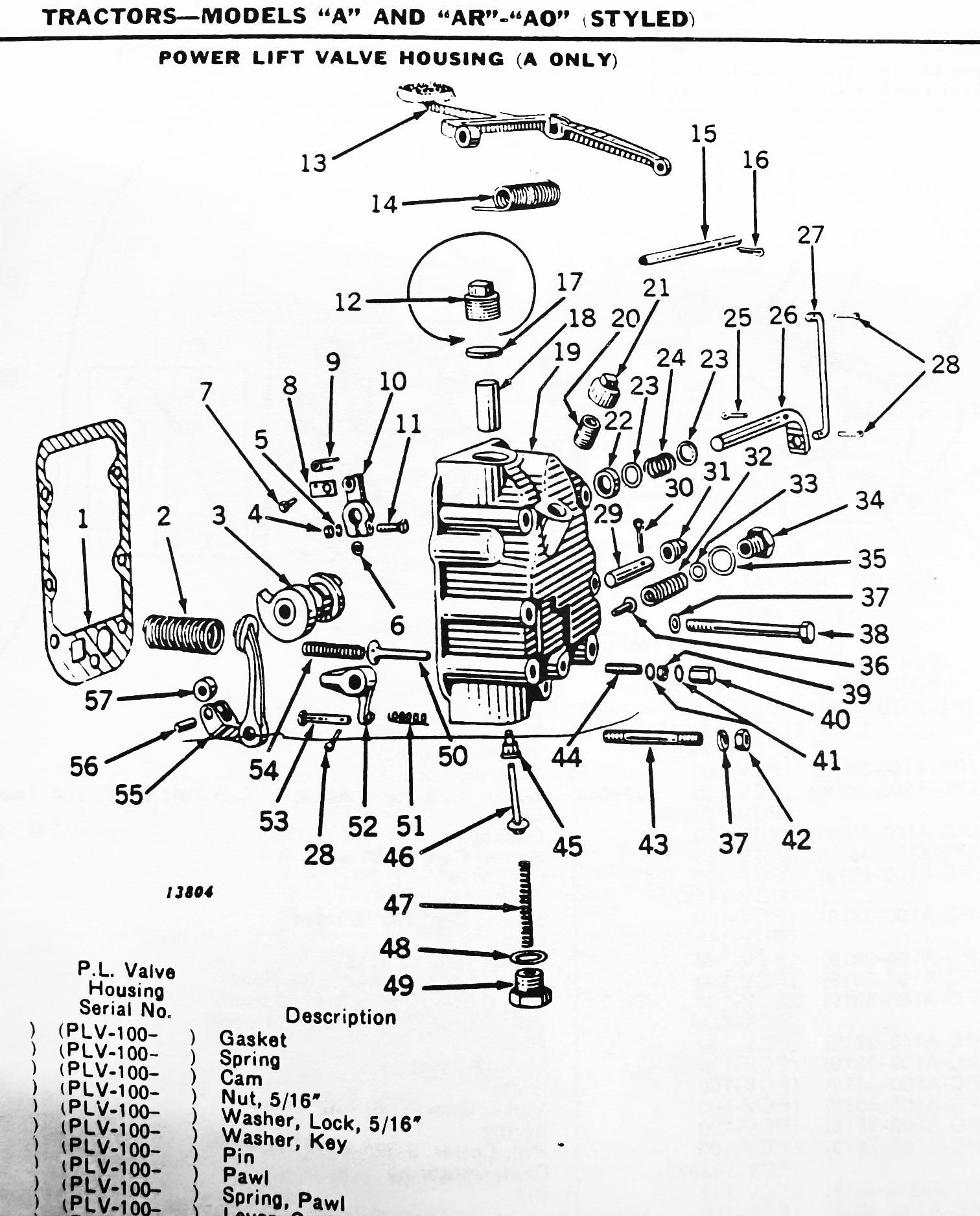 Thank you for specifying a Power Lift and not a Powr-Trol. Unlike the Powr-Trol, the Power Lift is either up, or down without any modulation in between. From your description, Mr. Thinker is quite sure you are not going to be able to fix your problem without removing the Power Lift unit from the tractor and disassemble the unit. Mr. Thinker is going to reference a Power Lift from a late model “A” even though you have a model “B” because the Power Lift unit is interchangeable for the “A,” “B” and “G.” If you are going to need parts, keep in mind your Power Lift should have a serial number tag attached to it because Deere did made changes throughout the production of Power Lifts and Powr-Trols.