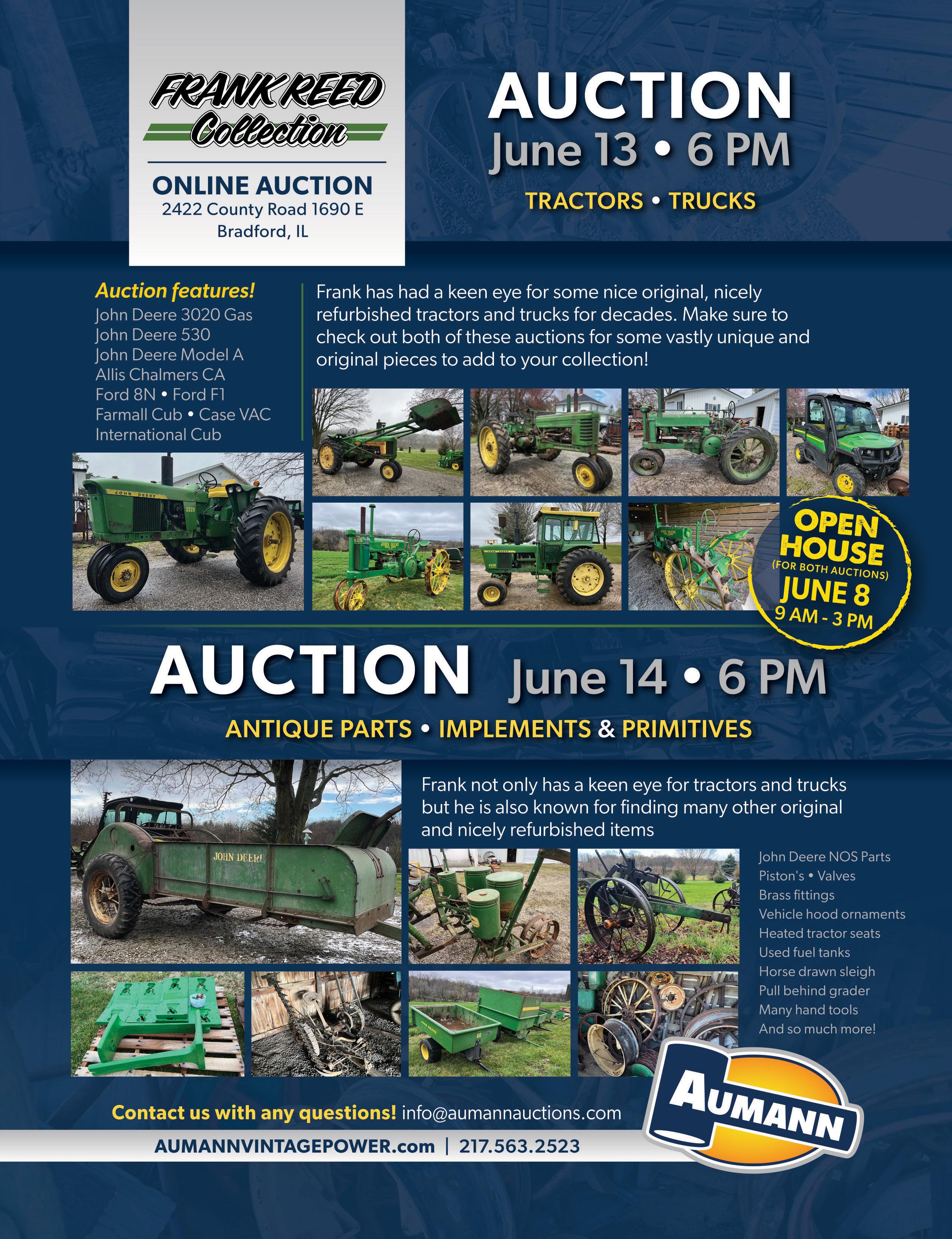 : U.S., PER SET: $29.00 • Nebraska residents, add 5.5 percent sales tax CANADA, PER SET: $70.00 U.S. funds • OTHER FOREIGN COUNTRIES, PER SET: $100.00 U.S. funds For more information or to place an order, call 402-643-6269 Green Magazine • PO Box 95 • Bee, NE 68314-0095 www.GreenMagazine.com • info@greenmagazine.com SET 1: 2014 and older (feature article listed after each issue) Apr 2011 Lost models • Oct 2011 7520 • Aug 2012 4030 Nov 2012 520 • April 2013 US B May 2013 4230 • June 2013 40 • July 2013 6600 combine Aug 2013 R • Nov 2013 8010 • Feb 2014 420 March 2014 Waterloo Boy, 1 • April 2014 Waterloo Boy, 2 May 2014 4620 • June 2014 720 July 2014 530 • Aug 2014 1020 Sept 2014 Unsty G • Nov 2014 Pre-D SET 2: 2015-2018 (feature article listed after each issue) April 2015 1010 • May 2015 330 • June 2015 BR/BO July 2015 3020 • Feb 2016 4010 • March 2016 Uns L April 2016 2010 • May 2016 440 • July 2016 H • Aug 2016 820 Nov 2016 40 combine • Dec 2016 E engines • Jan 2017 3010 March 2017 2520 • April 2017 R • May 2017 4630 • July 2017 2030 Sept 2017 G • Oct 2017 W power units • Nov 2017 4430 Dec 2017 840 • Jan 2018 7020 SET 3: 2019 and newer (feature article listed after each issue) Feb 2022 H • April 2022 830 • June 2022 1010 • July 2022 60 August 2022 1520 • Sept 2022 Unstyled B • Oct 2022 330 Nov 2022 Unstyled L • April 2023 GP • June 2023 3010 series July 2023 Late styled A • Aug 2023 820 • Sept 2023 4040 Oct 2023 GP specialties • Nov 2023 R • Dec 2023 440 • Jan 2024 WA 14-17 Feb 2024 4010 • March 2024 Early styled B • April 2024 620 Cost for single back issues of Green Magazine: $7.00 each U.S. (Nebraska residents add 5.5% sales tax) $9.00 each Canada (U.S. funds) • $11.00 each other foreign countries (U.S. funds) Number of magazines in each set will vary as inventory changes Visa, Mastercard, Discover, AmExp accepted Green Magazine® • May 2024 Page 71