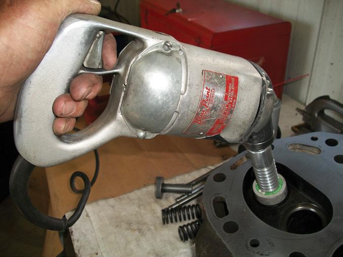 at least a pint of oil on the ground before I shoved the pump back into the housing and sought to completely drain the crankcase oil. After spending another hour draining the oil and cleaning up the mess on the shop floor, I set to work disassembling the Powr-Trol pump on the workbench.
