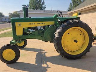 I grew up on John Deere two cylinder tractors on our family’s farm. I began collecting the John Deere 20 series a few years ago and after obtaining the final tractor in the series, our daughter took a picture with all seven of our grandkids on a tractor beside our barn. My wife and I are standing in front. There are two 720s in my collection, one is gas and the other is diesel.