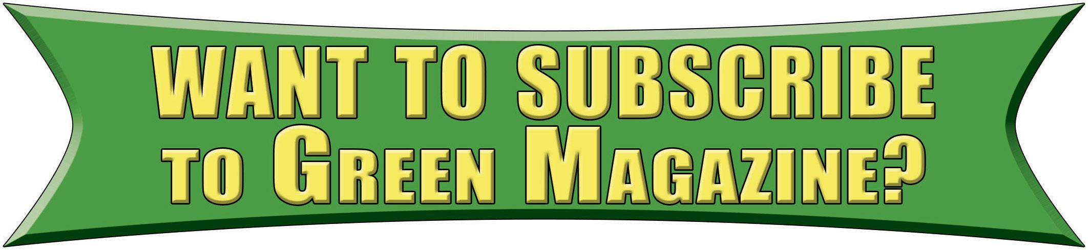 Free Issue Offer: It seems you, our subscribers, are our best form of advertising! More people find out about this publication by “word of mouth” than other forms of advertising. So if you're enjoying Green Magazine®, why not spread the word? Telling others about it can pay benefits. When you tell a friend about Green Magazine® and they subscribe, make sure they tell us who let them know about it. When they do, you will get an issue added to your subscription. These must be new subscribers, not renewals.
