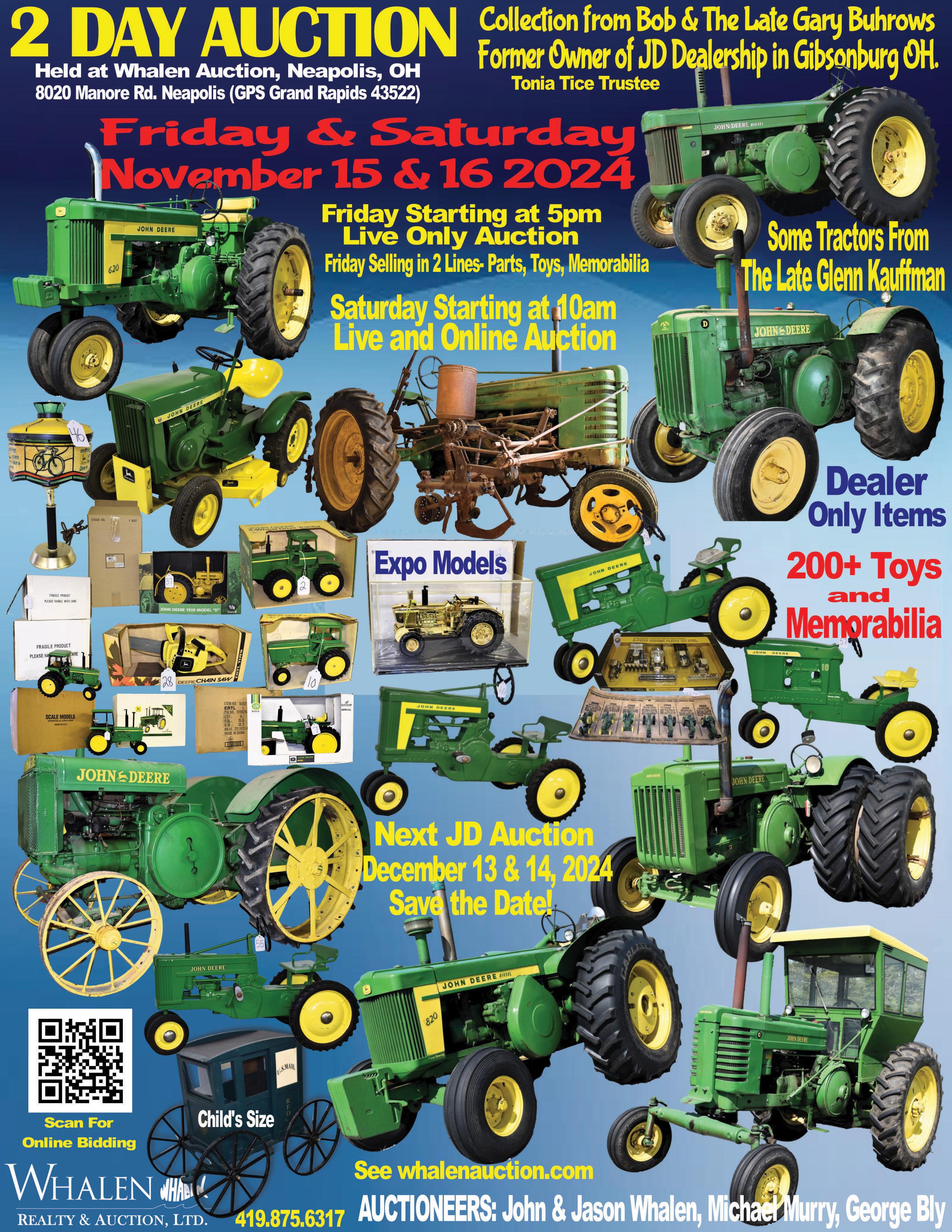 As I write this on October 1st, harvest is in full swing and probably half of the soybeans are already out of the field. Since we have had virtually nothing but hot and dry weather for the last two months, it seems like the beans got baked without the plants knowing they had reached maturity. This means the beans are in the single-digits moisture-wise, but the stems are green and in many cases so are the leaves and pods. It sure makes me glad that we have modern combines which can handle this sort of thing. I often think back to when I was a young farmer using a 4400 and cringing every time I would find some green stemmed plants. Or back when herbicides weren’t what they are today running into a giant sunflower or pigweed and hearing that “WHUUUMP” sound as the combine took it in and hoping that the next sound you heard wasn’t a belt squealing or the monitor buzzing. I did manage to make it to the Western Minnesota Show at Rollag in late August, which was another event with a great turnout of John Deeres. We will be running a few photos from the show over the next few months. It’s getting ever closer to Christmas, so don’t forget to order your 2025 Green Magazine calendars, featuring tractors built in 1958, either for yourself or for a gift. You can also order subscriptions and books, by phone or through our website.