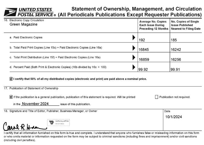 POSTMASTER: Send address changes to “GREEN MAGAZINE®, PO Box 95, NE 68314-0095.”
