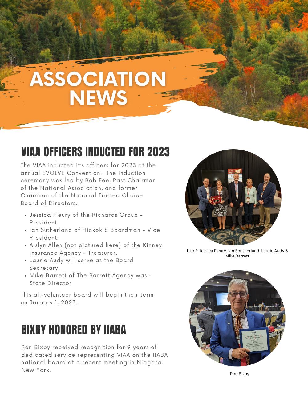 AsIbegintofinishoutmyyearasPresident,Iremainfocusedonhelpingyou,ourmembers,take advantageofthebenefitsofVIAA,whichbringsgreattoolsandopportunitywithBig“I”andTrusted Choice.Pleasekeepaneyeoutforphase2ofourTrustedChoicebrandingcampaignwithTVadson localTVstations(plusNESN),highlightingthefollowingagencyparticipants:Hickok&Boardman, KinneyInsurance,TheRichardsGroup,andBarrettInsuranceAgency.Itismyhopeyouwillseethese adsandtakeadvantageofnextyear’scampaign!