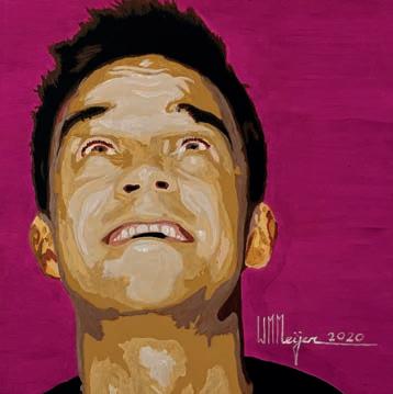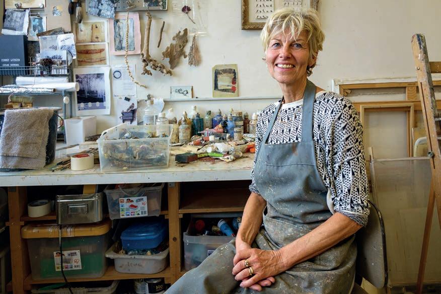 Boven haar werktafel vol met kwasten, krijt en potjes verf hangt een schilderij met daarop dode musjes. “Mijn moeder was dol op deze vogeltjes. We wisten dat ze zou gaan overlijden, ze kreeg euthanasie. De aanloop naar haar overlijden was daardoor lang en bewust. In die tijd heb ik veel musjes geschilderd. Een fase waarin ik bezig was met vergankelijkheid, leven en dood. Het schilderij is een typisch voorbeeld van wat ik ervoer geuit in beeld. Ik voel me fijn in die melancholieke sfeer. Ik heb een vrolijke uitstraling, maar vanbinnen zit een