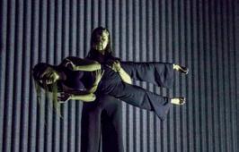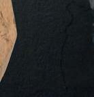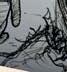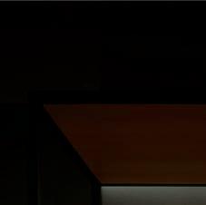 Bovenin een dominant zwart vlak. Links een kleiner donker deel en rechts een licht gebied. “Dat ben ik. Het is een dubbel gevoel. Ik had dat verlangen deel te nemen, maar aan