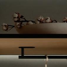 Ze staat op en loopt naar een serie nieuwe kleine schilderijen op papier, die zijn speelser en met meer kleur. “Je kunt duidelijk zien dat ik nu losser werk maak. Het is minder besloten, je kunt als kijker bijna ‘aanschuiven aan tafel’.” Het middenveld is ruimtelijk en er zit meer contrast in de werken. Strepen tegenover ronde vormen, donkere tinten naast een opvallende kleur. “Mijn vrijere aanpak vind ik een positieve ontwikkeling, dit had ik eerder niet gekund of gedurfd. Het oergevoel van vroeger neem ik wel nog steeds mee, het is een puur gevoel van waaruit ik kan werken. Ik ben op heel veel fronten gegroeid in mijn leven, maar ik blijf ook worstelen. Het gevecht benader ik nu luchtiger én mijn leven is verder ook gewoon heel leuk”, zegt ze blij. ✶