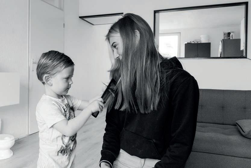 wel erg druk. Als Jaydon iets stouts deed, bemoeide iedereen zich ermee. Ik verbood het, Stanley zei er wat van en ook opa had een mening. We hebben veel hulp gehad van mijn vader en dat waarderen we enorm, maar soms ontstonden er irritaties. Hij was blij toen we een eigen woning vonden en wij ook. Het is heerlijk met z’n drieën, zelfstandig, eigen regels bepalen, niemand die zich ergens mee bemoeit, echt fijn.” Familieleden vroegen haar tijdens de zwangerschap of ze niet langer had willen studeren, werken, op reis gaan of vaker uit met vrienden. Haar opa en oma van moeders kant hebben heel lang aan de situatie moeten wennen. Inmiddels vinden ze het bijzonder dat ze dit nog mee mogen maken, een achterkleinkind. Sommige mensen om haar heen vonden het lastig hun rol te bepalen. Zo wist haar mentor op het Nova College niet goed hoe ze Nina moest begeleiden bij haar studie in combinatie met de zwangerschap. Toch wist Nina tijdens die periode het kappersdiploma te behalen. Haar stagebegeleider schrok van de dikke buik, maar vroeg al snel of ze na de bevalling bij hem wilde komen werken. Dat heeft ze gedaan, drie dagen in de week werkt ze in zijn kapperszaak.