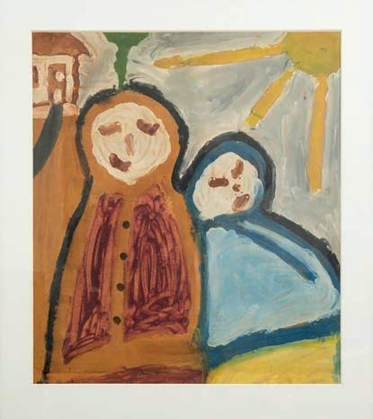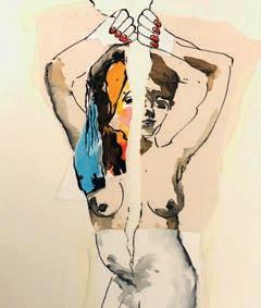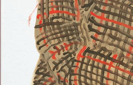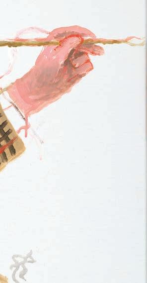 zat tijdens het eten te tekenen. Ik wilde ook daar zijn waar de aandacht was. Dit heb ik vaak verbeeld, van hier naar daar. Het had natuurlijk te maken met gezien willen worden. Toen mijn zus op kamers ging, mocht ik op haar plek zitten, maar elk weekend als ze thuis kwam moest ik weer op de stoel naast mijn moeder. Vreselijk vond ik dat”, zegt ze lachend. “Mijn werk gaat over het verlangen om gezien te worden én om erbij te horen. De wens om verbonden te zijn, opgenomen in een groep, het is de rode lijn in mijn werk.”