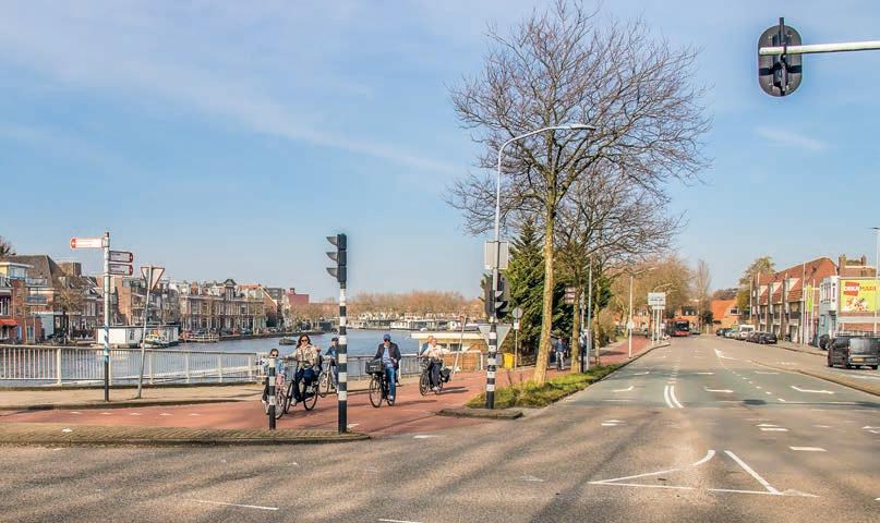 “Op deze plek op de brug zie je de ingang van het hofje van Bakenes en heb je een prachtig uitzicht op het water met verderop, aan het Spaarne, de oude panden van brouwerij De Olifant. Je ziet ook de Voet van Mercurius. Er valt hier veel te zien en te vertellen. Vergeleken met de Grote Markt is het hier rustig. De wandelingen die ik maak met de Oekraïners zijn niet veel anders dan die voor toeristen. Met Oekraïners ga ik vaak nog wat verder weg, de natuur in bij Elswout of Middenduin bijvoorbeeld. En de Haarlemmerhout natuurlijk. Het accent ligt anders. Voor hen is het aanbod breder dan de Haarlemse binnenstad.”