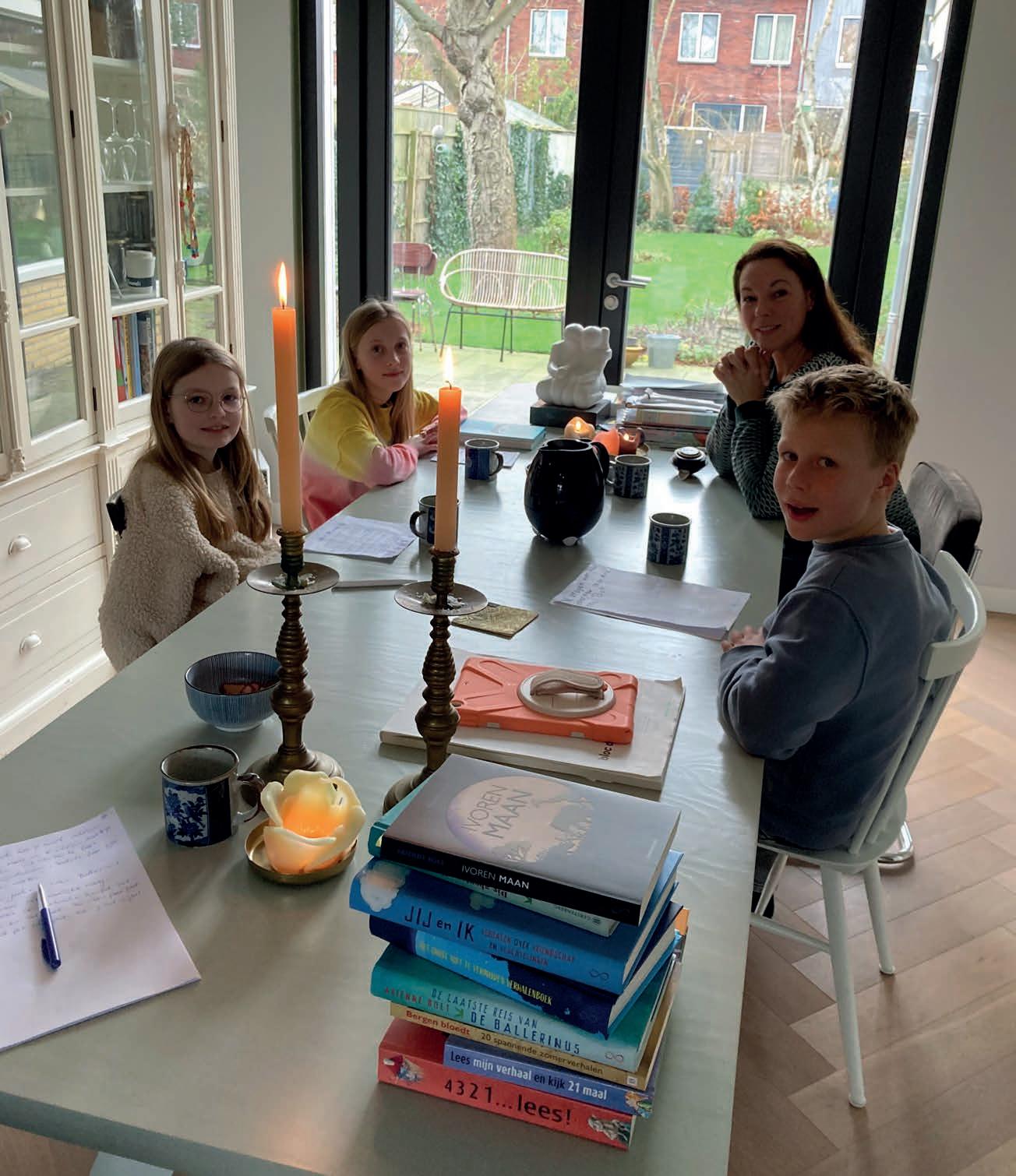 werkt o.a. als vormgever voor HRLM en HRLMtje, woont in Haarlem en is moeder van Luuk (19), Bo (17) en Guusje (15).