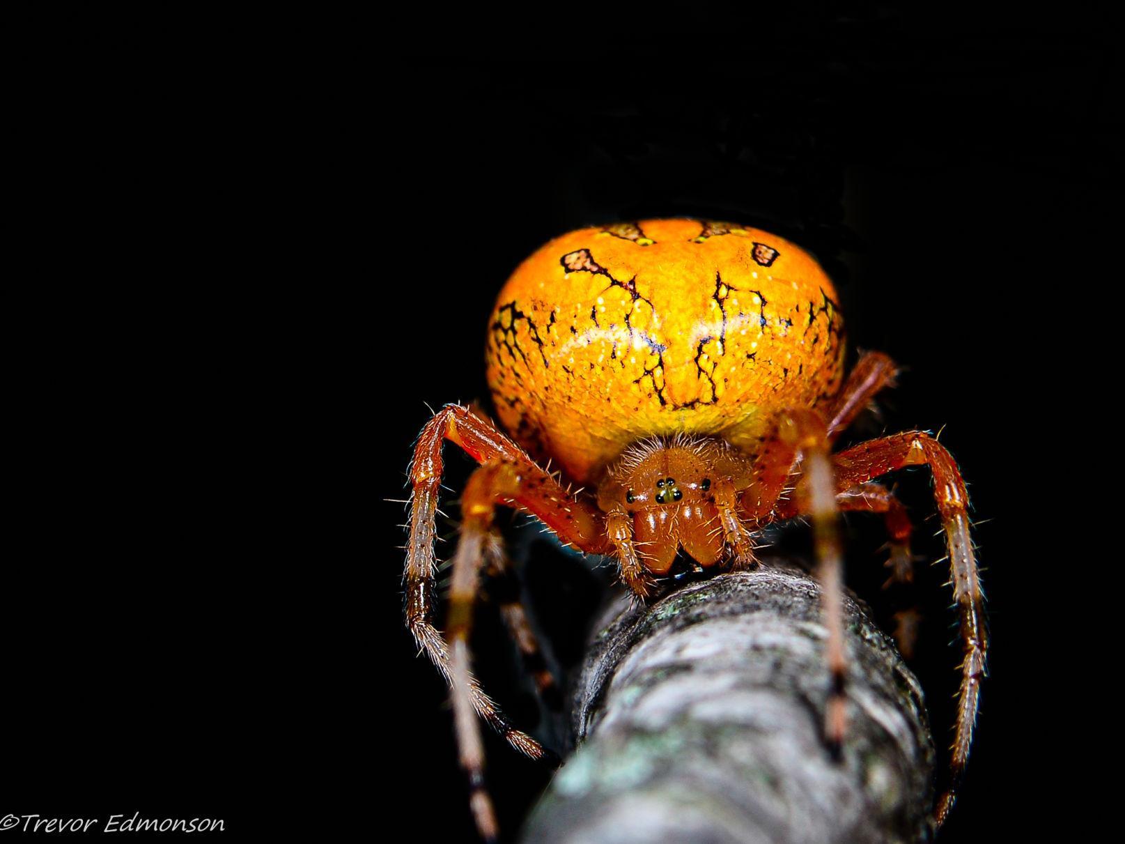 Quite like a Jack-o-Lantern, these spiders are nocturnal. They work their web during the morning then take time to rest before the nighttime hunt begins. Due to their small stature, the pumpkin spider sticks to smaller insects for food. Impressively enough, some have been documented to catch up to 14 in one day. They communicate through hair sensors on their legs, which not only helps them hear, but sense the environment around them to easily attack prey. Creepy.
