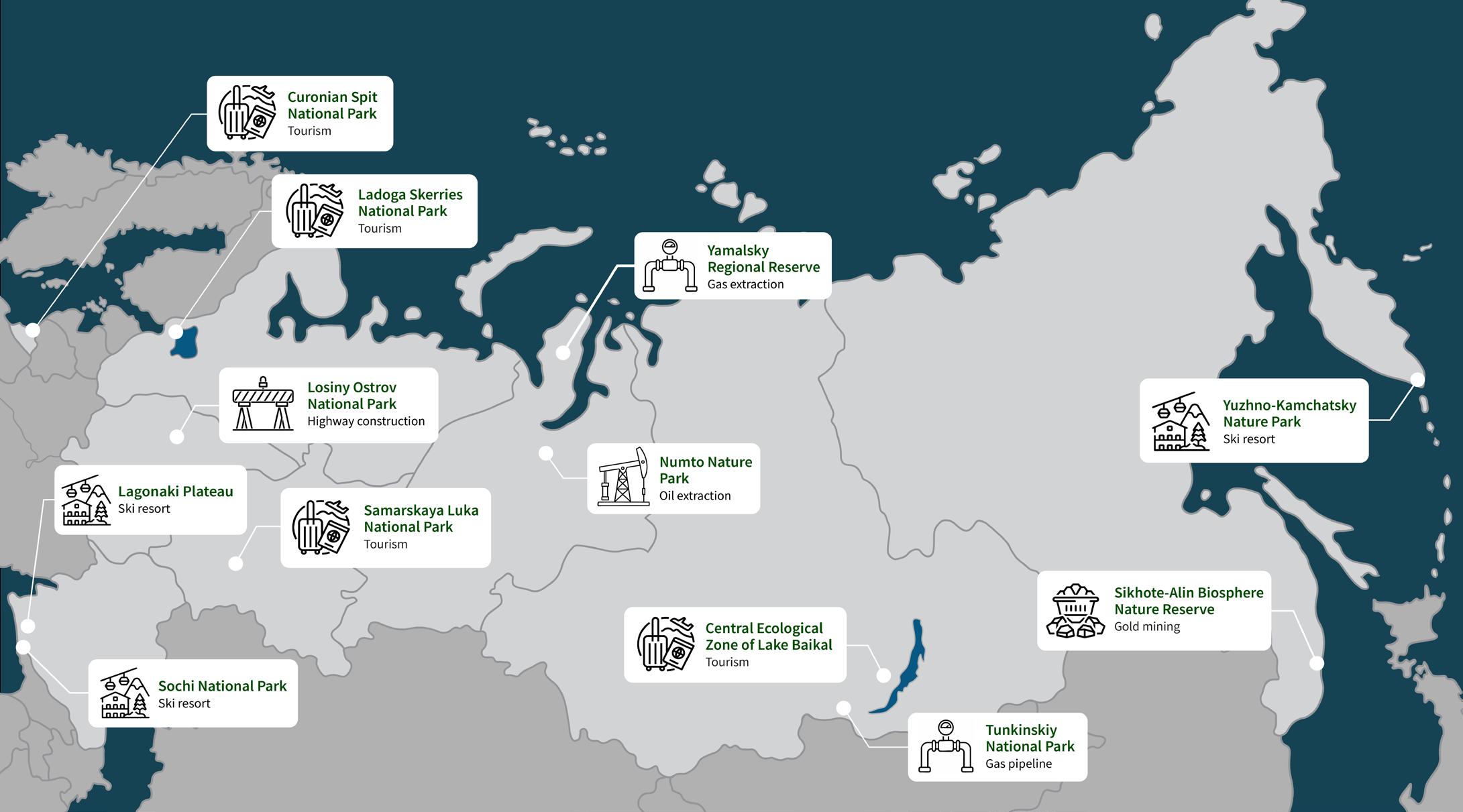 In 2022 and 2023 alone, 12 destructive amendments were made to Russia’s five main environmental laws, aimed at weakening state environmental reviews and reducing the economic burden on large businesses at the expense of the environment.[2.2]