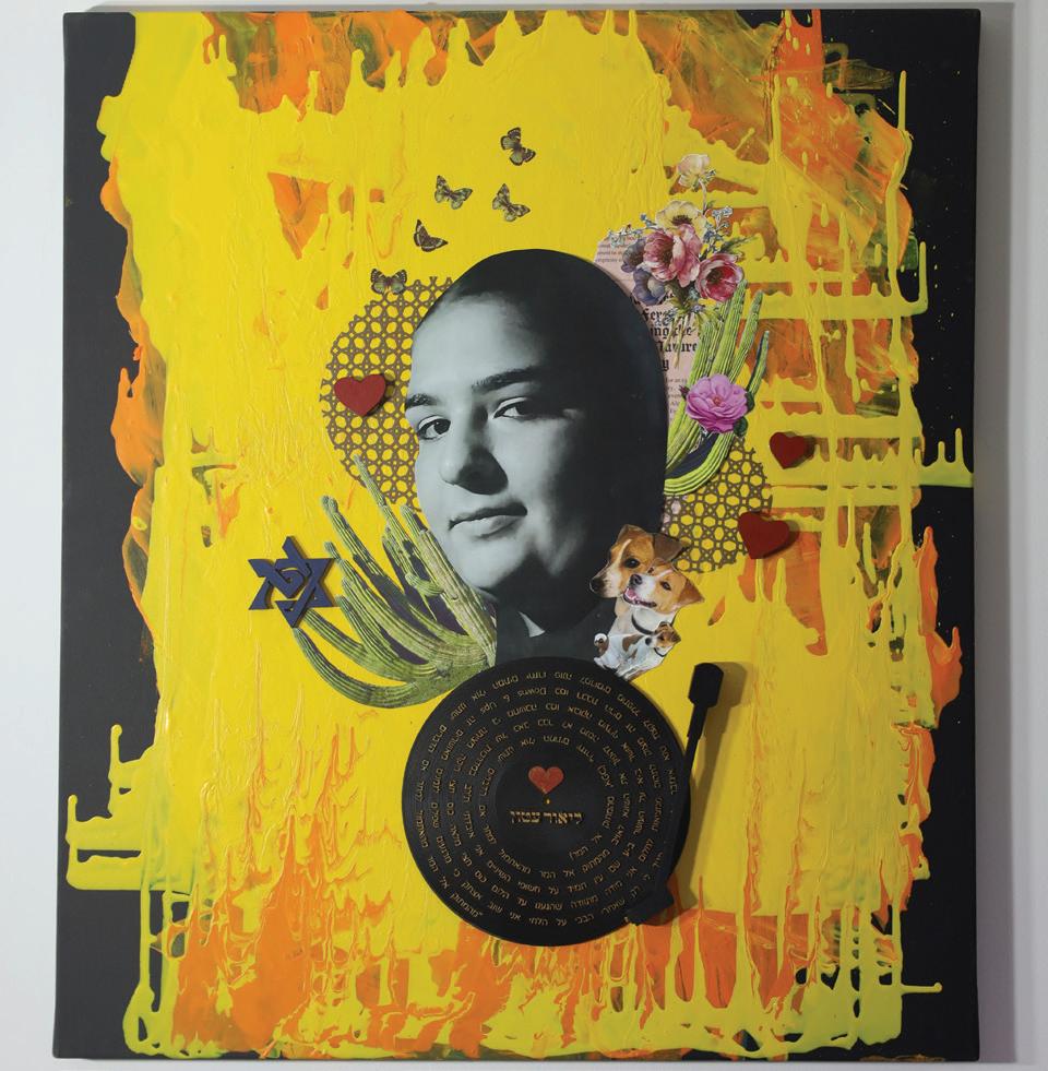 In my creation, I worked intuitively using information we received from the dear Shalom family. I was looking to present Noam in her life: authentic, beautiful, powerful and brave. It was a challenging encounter. In the end, I used what I had in the studio while organically combining Sam’s works, which he sent to me from Florida, the final creation took on the face of a treasure chest, just as Noam was a treasure.