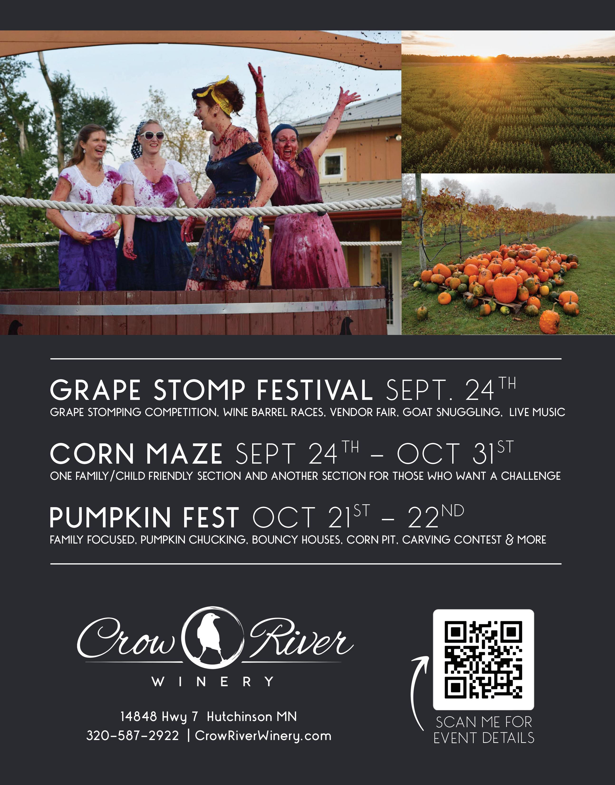 Experience this three-day festival, the largest of its kind in the Midwest, at CARLOS CREEK WINERY in ALEXANDRIA and enjoy live music, food trucks, more than 100 art vendors, and grape stomping competitions.