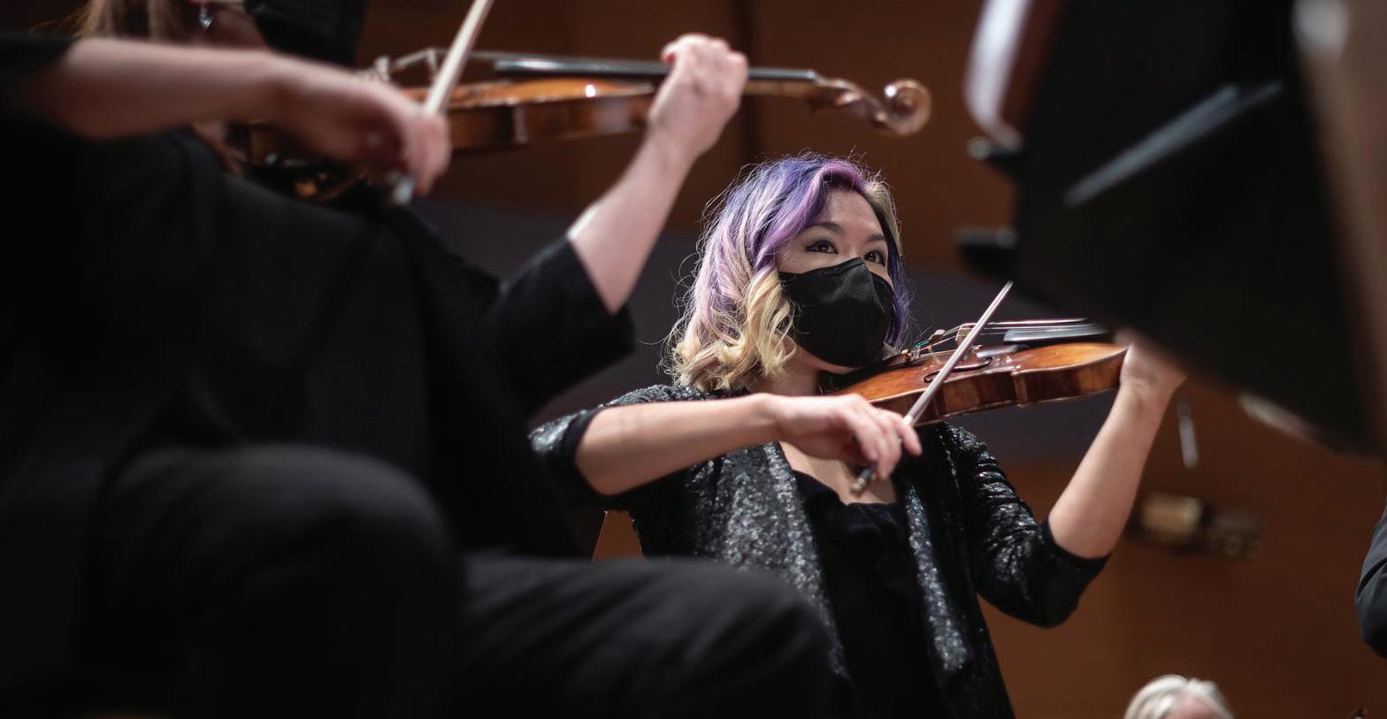 “We’ve grappled with questions around whether it is OK for a solo violinist or pianist to perform unmasked if they feel it is necessary to deliver the best performance,” says Min nesota Orchestra communications director Gwen Pappas.