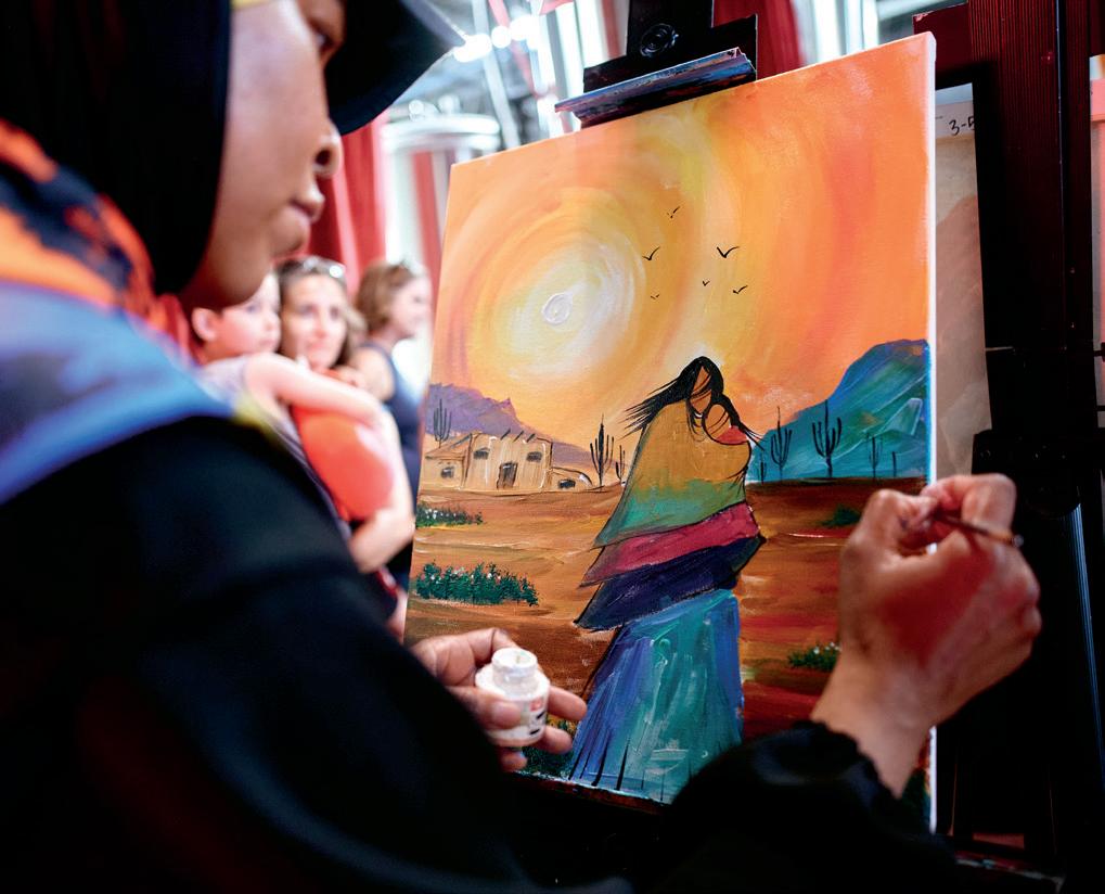 ARTIST TAMINA MUHAMMAD WORKS ON HER PAINTING