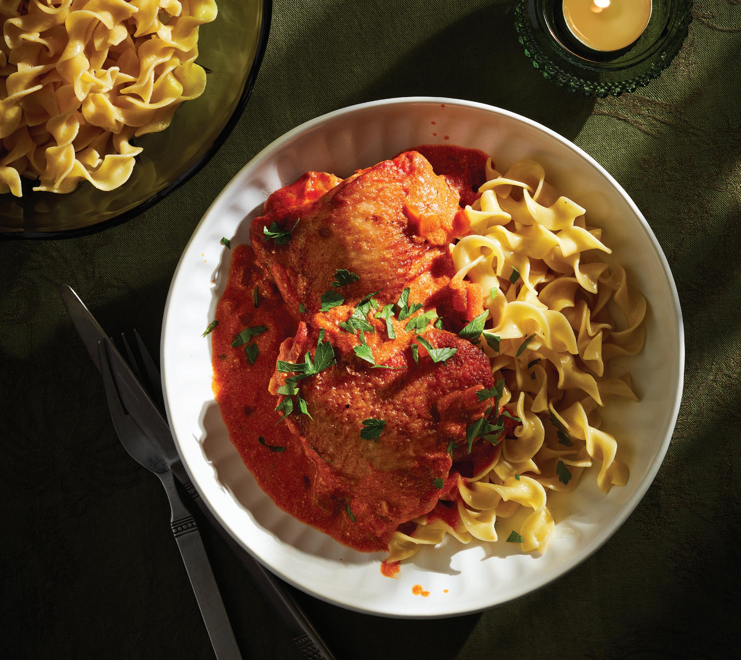 This recipe was passed down to Katherine by her Omee (grandmother). Katherine grew up enjoying this dish on a weekly basis. Thankfully, she was happy to share it with Randy to keep the tradition alive. It’s one of our favorite chicken dishes due in large part to the Pernod, a French anise-flavored liqueur that gives it a magical flavor (so magical that Katherine laps up the sauce with a spoon). We love walking down memory lane whenever we whip this up for dinner.