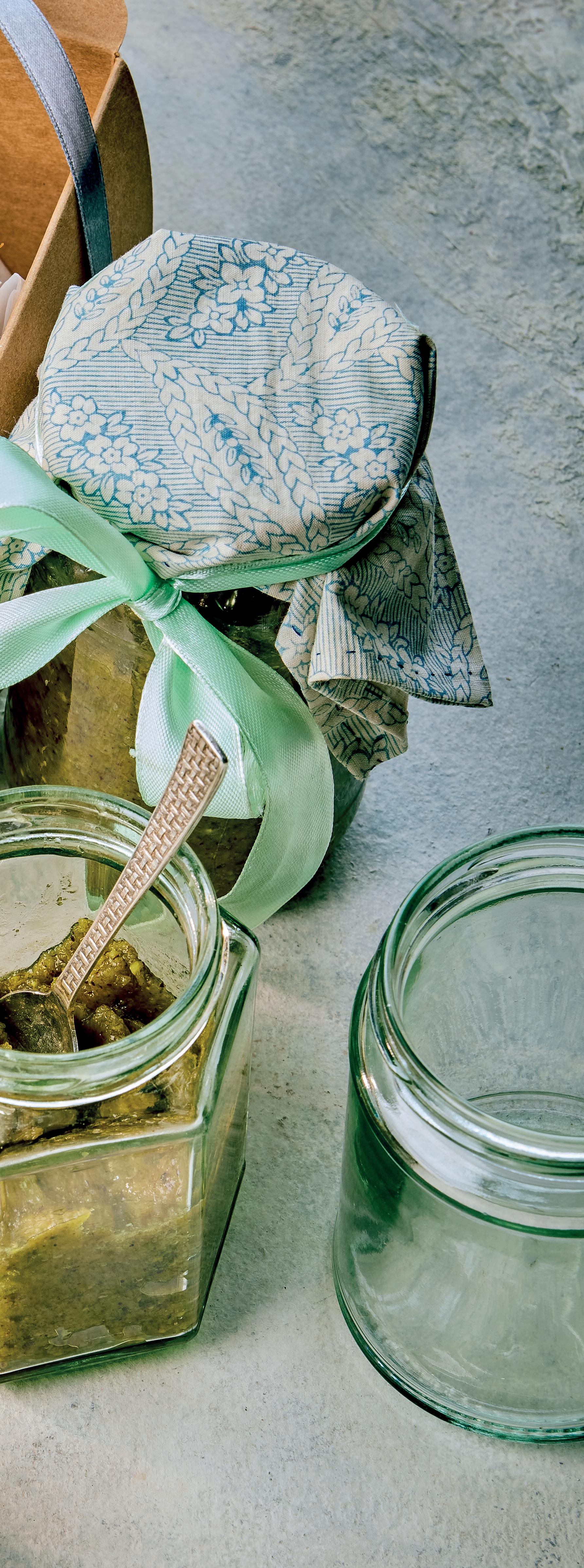 OK, let’s do a little rapid fire: What recipe from the book is for a milestone anniversary with your signi cant other? Something romantic, like the Pistachio Chive-Crusted Rack of Lamb. It’s got the classic mint sauce, which is once again a no-bake, so that makes it pretty easy to just focus on the lamb. Rack of lamb is easy to buy at the butcher counter