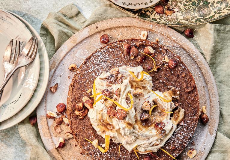 Let’s go back to your book. So, if readers could only make one recipe from the book to impress someone on a rst date, what would you say it should be? And what cocktail should they pair it with? You’re going to make the Olive Oil Chocolate Tart. It’s so bloody simple. The crust might be not-so-simple, but you could just buy a pie crust and do the filling, and then it’s a no-bake. It’s so easy. You just let it set, you sprinkle some sea salt on it, and it just melts in your mouth. It’s heaven. You would obviously pair that up with the Espresso Martini.