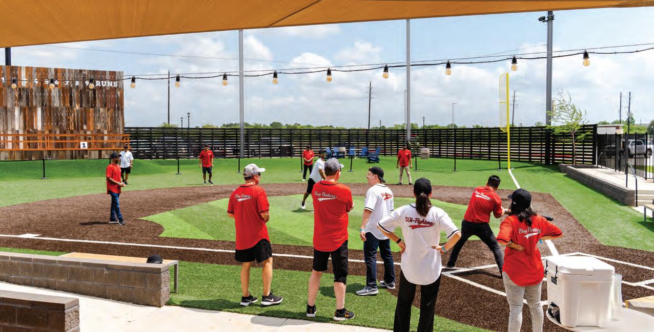 Home Run Dugout—like Topgolf, but for baseball—has upped the batting cage game considerably. Rather than a chain-link fence and some worn-down AstroTurf, the batting bays at this Katy location feature soft-toss pitching machines and simulated gameplay. The bays also can convert into a projector screen with audiovisual equipment for a presentation. Available for corporate events and full-venue buyouts, the 46,000-square-foot venue also holds a miniature baseball field with stadium lights, a fullservice restaurant offering an upscale ballpark menu, a concert stage, and three bars. Team members can enjoy the outdoor patio