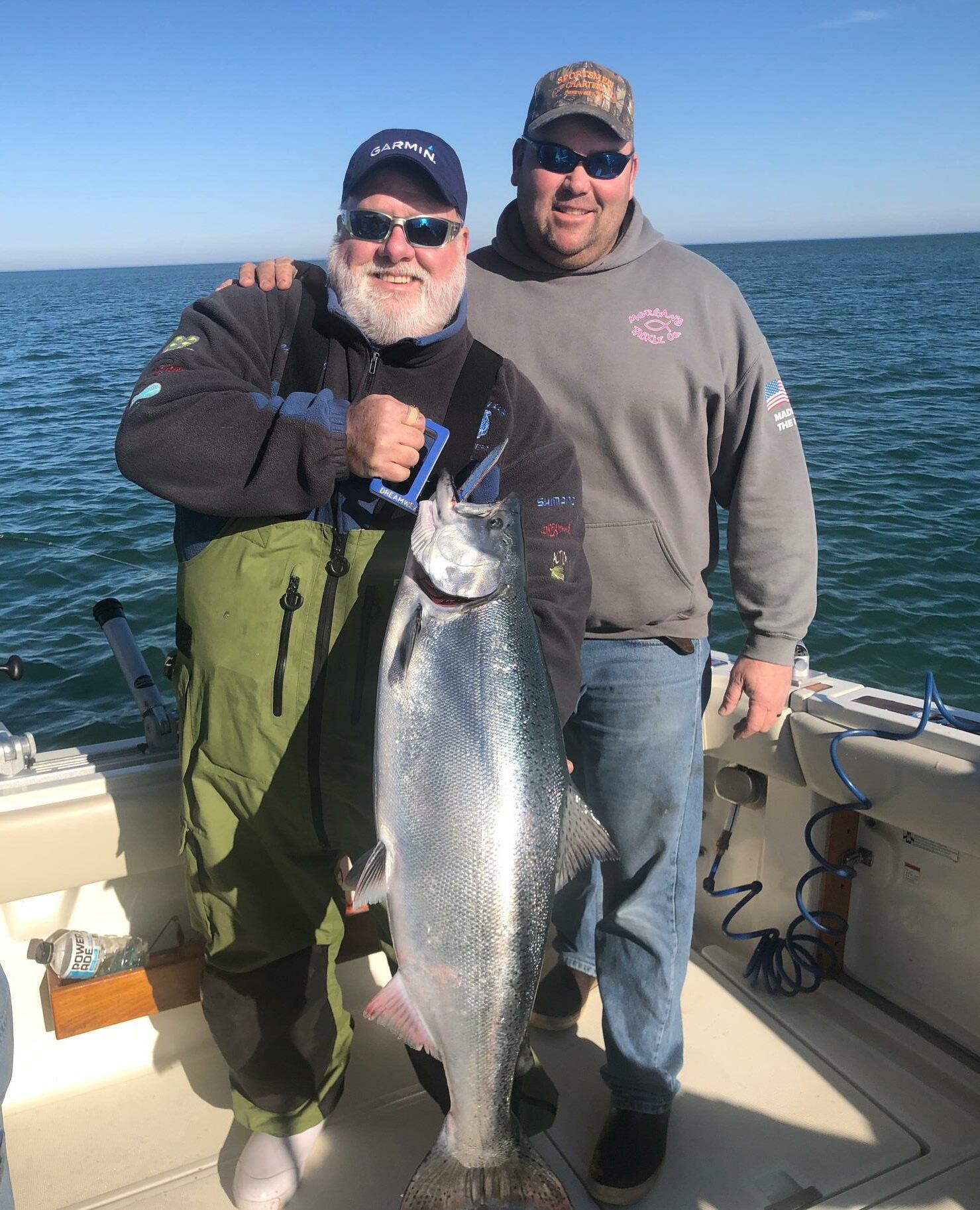 During the month of August, GreenStone Farm Credit Services hosted a Facebook contest titled “Hooked On The Outdoors” where any commenter had the chance to win a charter fishing trip for themselves and a guest with the Michigan Out-of-Doors TV crew. With great excitement, a slew of hopeful participants shared their favorite summer memories exploring the great outdoors. Justin Gekiere of Richmond, MI shared a photo of his boat out on the water and was randomly selected as the one lucky winner! The night before the charter trip, GreenStone Financial Services Officer Stevan Stoutenburg met up with Justin and his father Lou for dinner. After taking some time to connect, Stevan soon realized that Justin was an army veteran and served in Afghanistan at the same time as him. We continue to be amazed by the ways the outdoors brings people together! The next morning the crew set out on their voyage upon the “Silver Addiction” with captain Mark Williams at the helm. It was a cool and choppy morning on the water, but the fish were biting! Justin, the honoree, reeled in the largest salmon of the day with seven salmon being caught by the group. Thank you once again to Michigan Out-ofDoors TV for partnering to provide this opportunity!