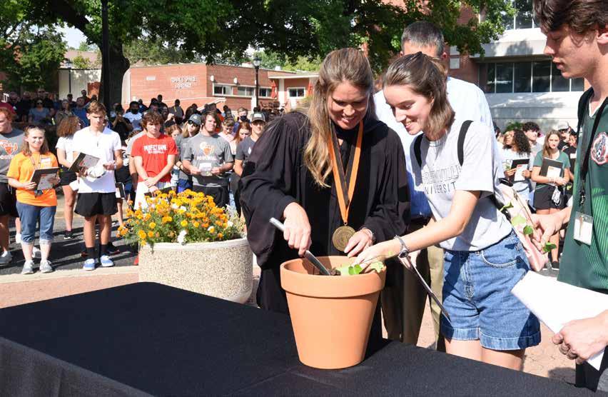 3 Mel Starr ’64 dedicated his 15th book Suppression and Suspicion (Lion Fiction, 2022) to retired GU history professor Dan Jensen. Mel presented the book to Dan over Homecoming weekend in October 2022. He noted that Dan was a great influence on his decision to pursue a degree in history and to teach. He indicated he wouldn’t