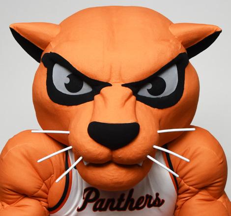 Hoguey went from black to orange in 2023 and his face was created to more accurately exemplify the panther logo. This Hoguey is a fierce competitor and full of personality!