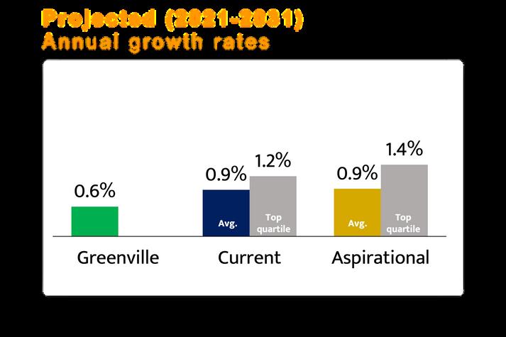 Our plan sets the bar high for where we want to be in ten years, which is in the top quartile for job growth amongst a set of 11 peer communities To get there, we will need to (1) invest heavily to expand our portfolio of project-ready industrial sites and buildings; (2) double-down on our marketing and promotion efforts to raise awareness of our community’s strengths; and (3) enhance our business development efforts to engage more prospects, more deeply, while leveraging our partners more efficiently