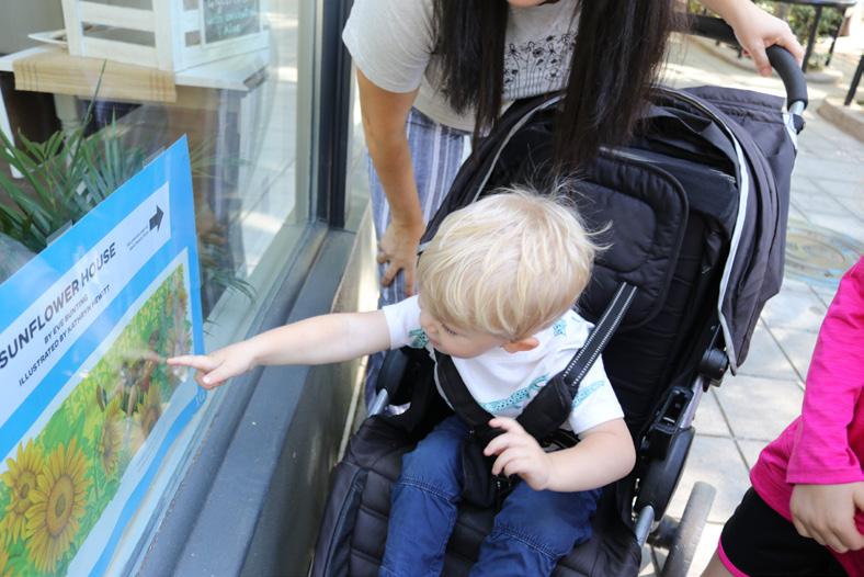 Messenger says, “StoryWalk® is a unique way to experience downtown Greenville with kids. Your kids will love looking for the book pages in the windows.”