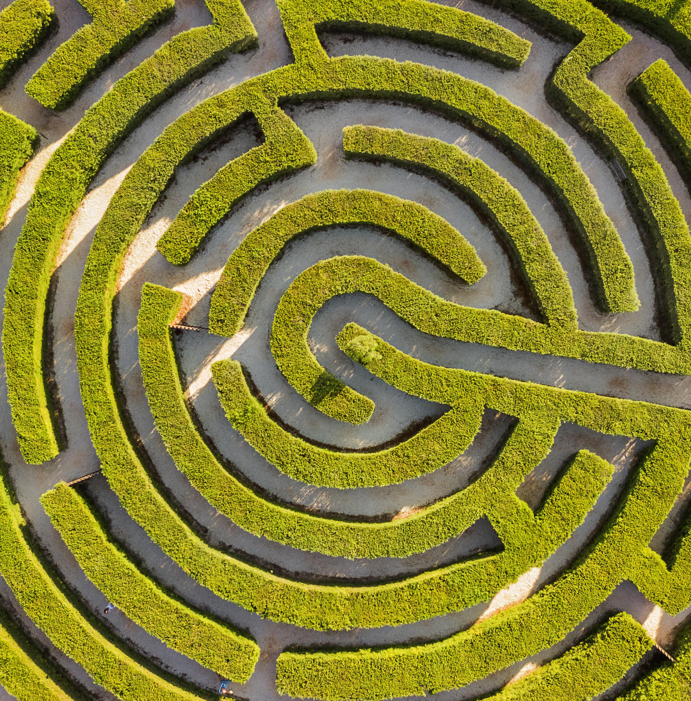 Beginning in the 1500s, hedge mazes became popular with wealthy Europeans and royalty. These mazes were elaborate gardens designed for pleasurable strolls with company, moving the usage of labyrinths to a less complicated, more relaxed type of entertainment. Instead of traversing the labyrinth with a singular goal, hoping to discover the one path towards the center and back out again, hedge mazes offered a leisurely alternative with many ways to navigate through the beautiful gardens. This use of gardens also marks one of the earliest examples of people using the thrill of escape from a physical space purely for entertainment.