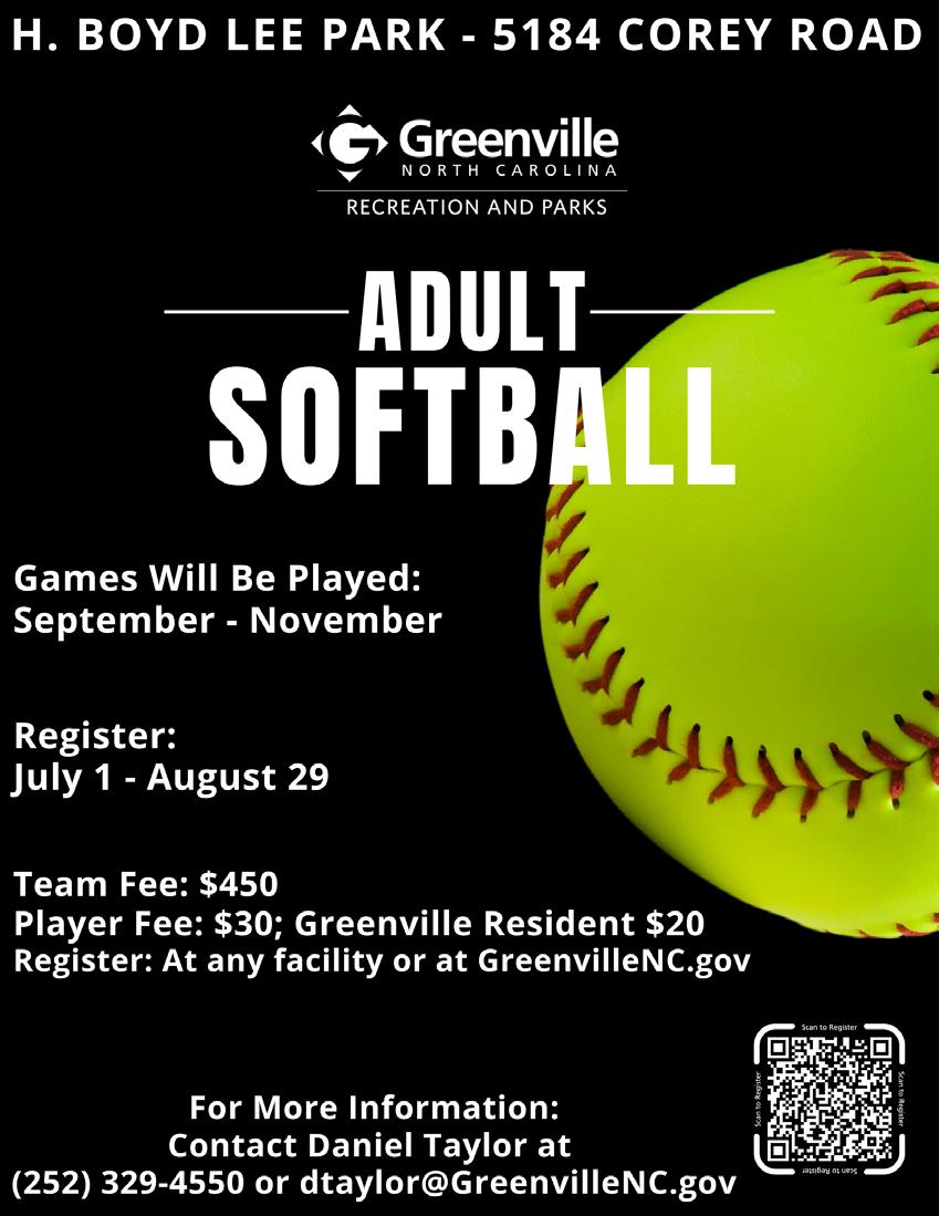 Registration information will be available starting August 1, 2024. For more information, please call (252) 329-4968 or email SStanley@GreenvilleNC.gov