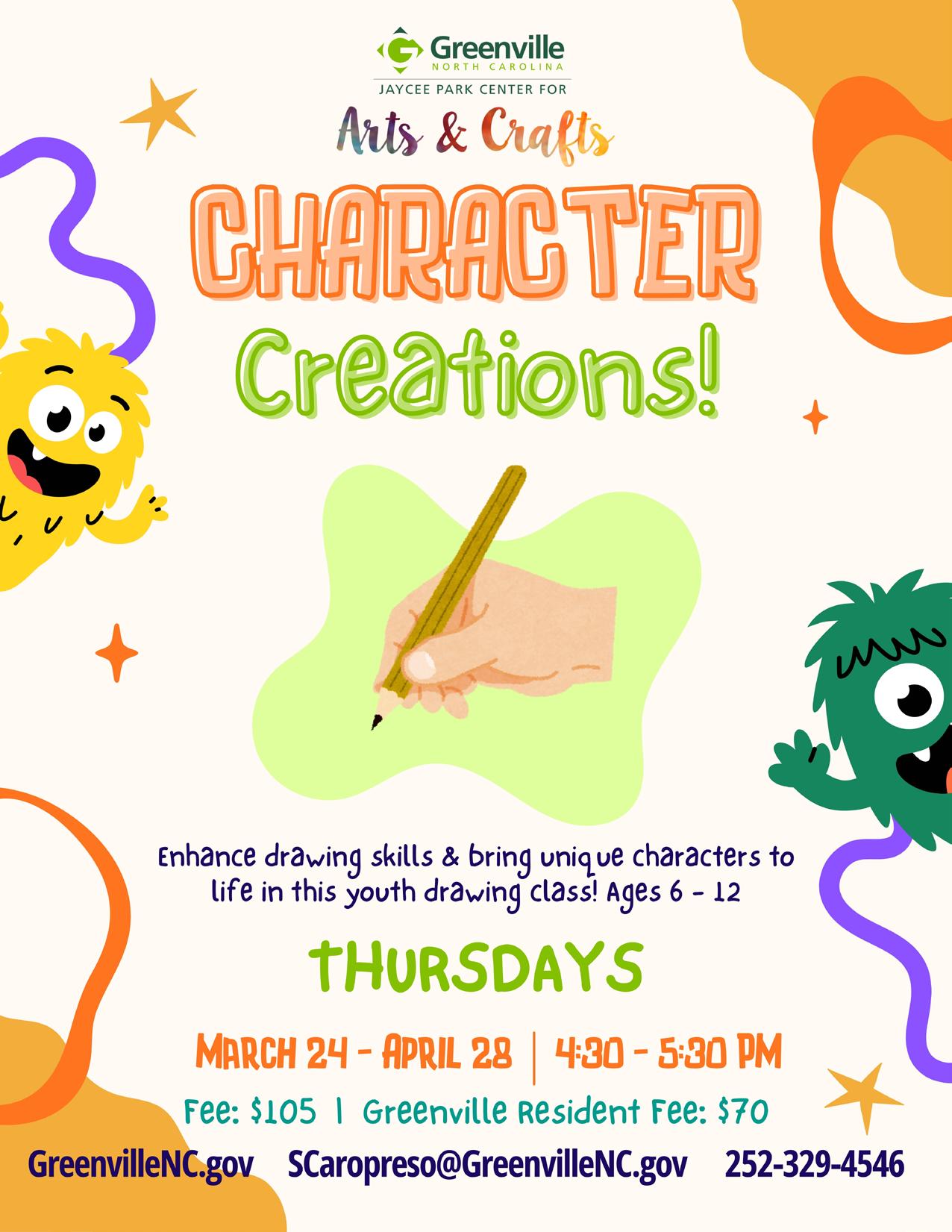 Registration will be taken by at Greenville Recreation and Parks Department facilities or online at GreenvilleNC.gov. Programs will have varying registration dates; please review program information carefully. Registering early is encouraged. Please call (252) 329-4567 for more information.